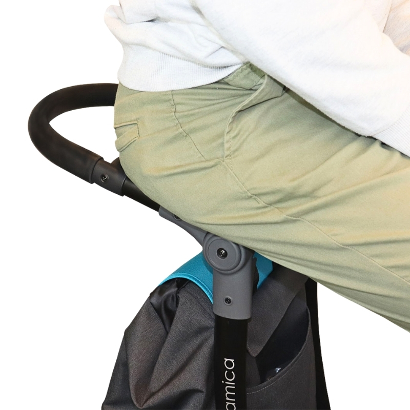 - Innowacją w wózku KOALA jest uchwyt, który można obracać i łatwo przekształcić w siedzisko, naciskając duży przycisk z boku. Podczas postoju koła nie dotykają podłoża, więc utworzone siedzisko jest wyjątkowo stabilne.